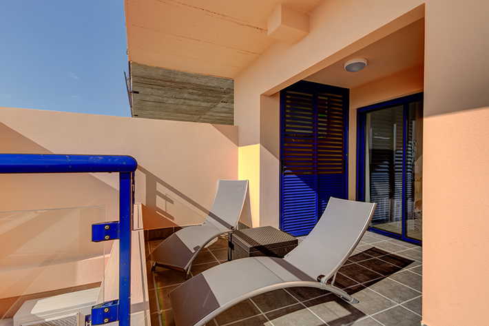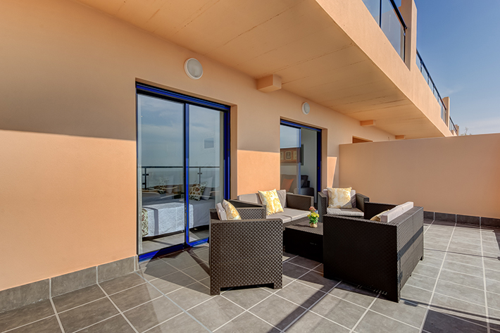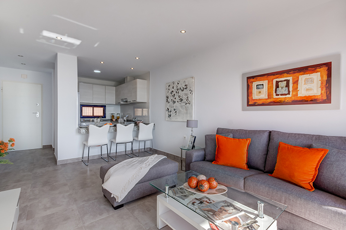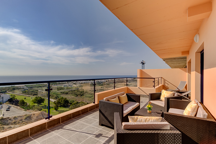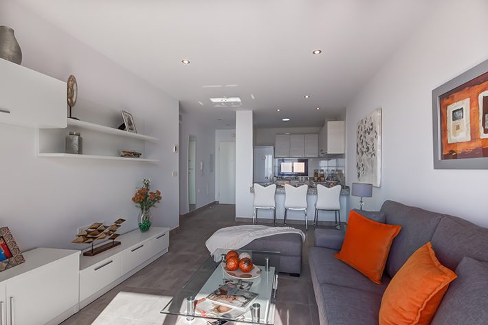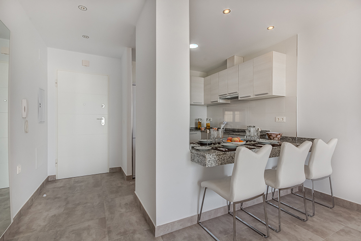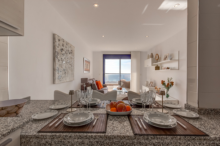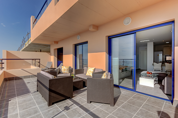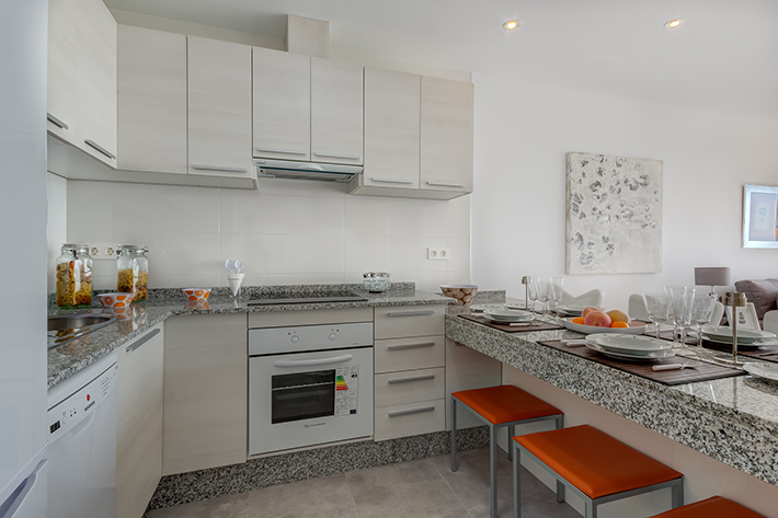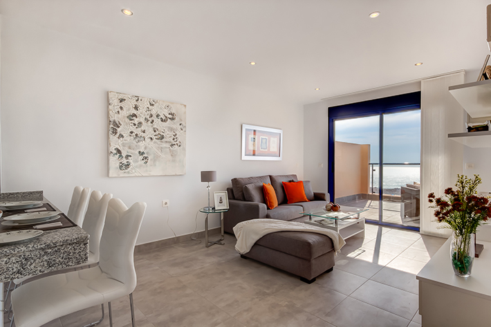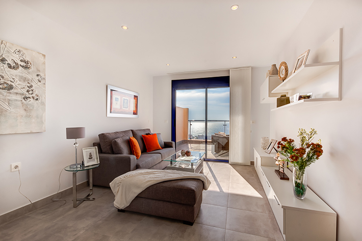 De gemeubileerde appartementen hebben een bebouwde oppervlakte van 60 m² tot 75 m² en beschikken over een royale woon-eetkamer met schuifdeuren naar het terras met panoramisch zeezicht, volledig ingerichte keuken met eetbar (inclusief vaatwasser, keramische kookplaat, oven, koel/vries-combi, afzuigkap en granieten blad), 2 slaapkamers en 1 badkamer.