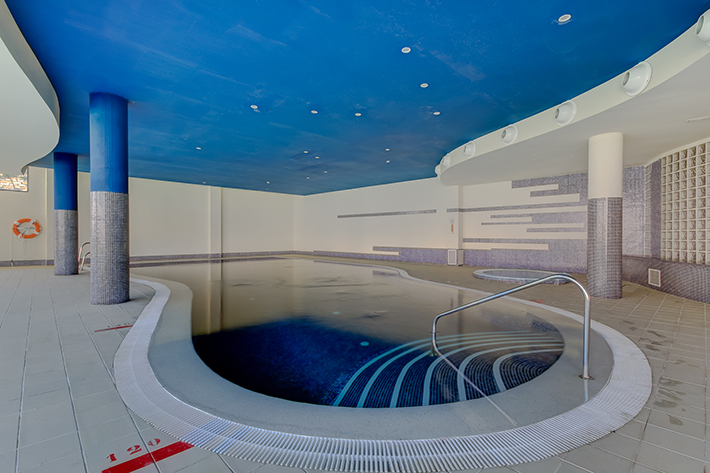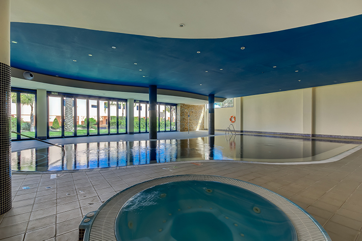 Deze exclusieve urbanisatie beschikt tevens over liften met panoramische uitzichten, prachtig aangelegde gemeenschappelijke tuinen, een zeer groot buiten zwembad, een overdekt zwembad met Jacuzzi en een parkeerplaats met berging v.v. automatische deuropener.