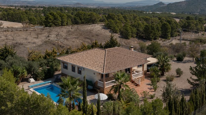 Gemeubileerde vrijstaande villa met 3 slaapkamers, 2 badkamers, zwembad en carport, gelegen op een perceel van 20.000 m² in La Parroquía, behorende bij Lorca (Murcia). Een gedeelte van het perceel, rondom de villa, is volledig omheind en aangelegd met bomen en struiken.