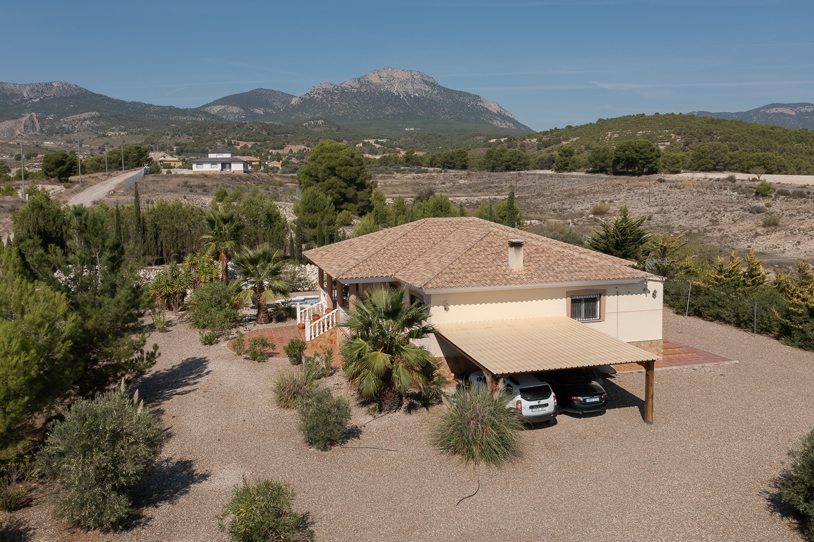 Gemeubileerde vrijstaande villa met 3 slaapkamers, 2 badkamers, zwembad en carport, gelegen op een perceel van 20.000 m² in La Parroquía, behorende bij Lorca (Murcia). Een gedeelte van het perceel, rondom de villa, is volledig omheind en aangelegd met bomen en struiken.