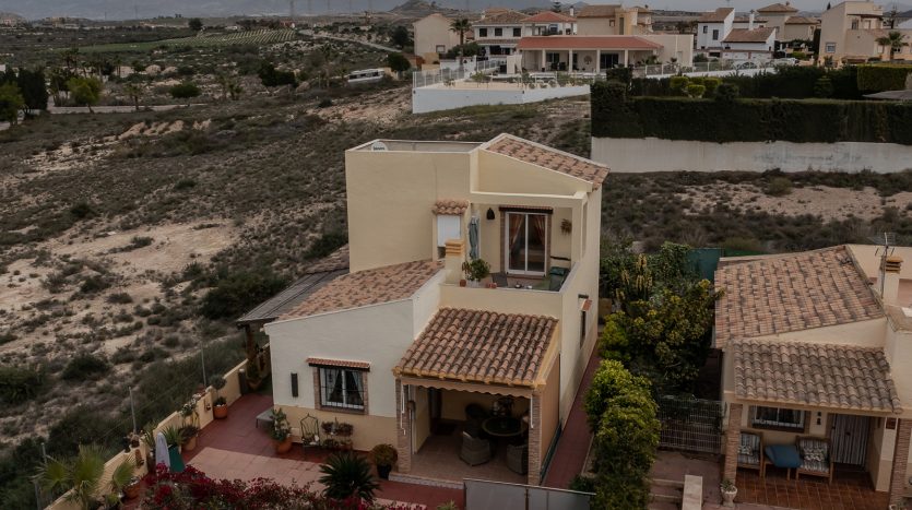 De duplex wordt omringd door een patio met diverse planten en struiken, die zorgen voor veel privacy. Daarnaast is er een berging en een overdekt terras. Alle ramen zijn voorzien van traliewerk.