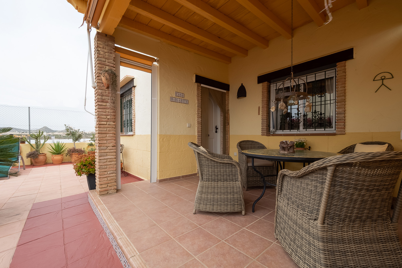 De duplex wordt omringd door een patio met diverse planten en struiken, die zorgen voor veel privacy. Daarnaast is er een berging en een overdekt terras. Alle ramen zijn voorzien van traliewerk.